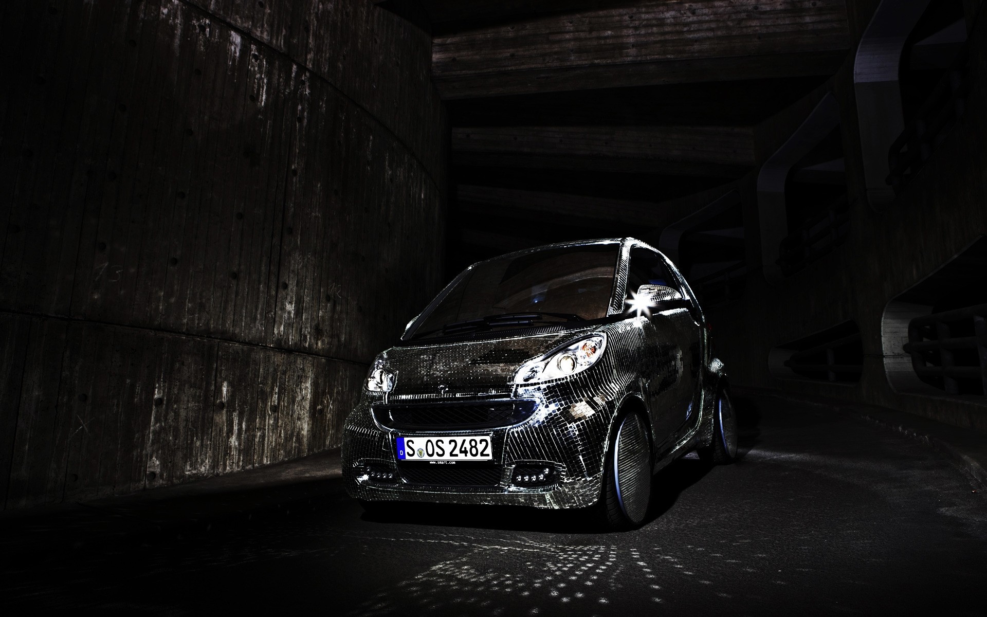 Çok katlı bir binanın çatısında gümüş renkli bir araba