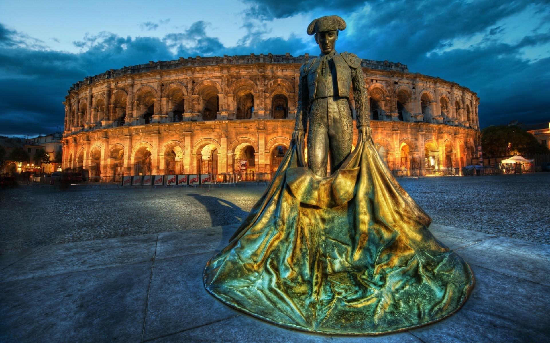 Avrupa'daki meydanda bir boğa güreşçisinin heykeli