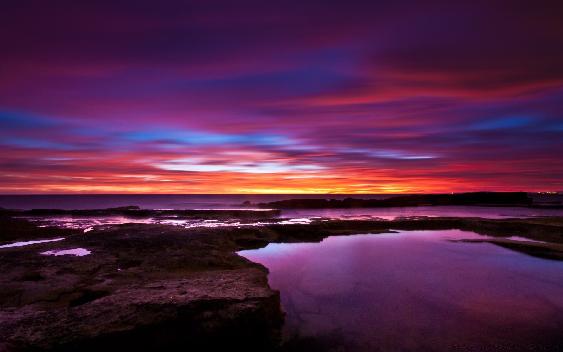Suyun üstünde bulutlarla gün batımı gökyüzü