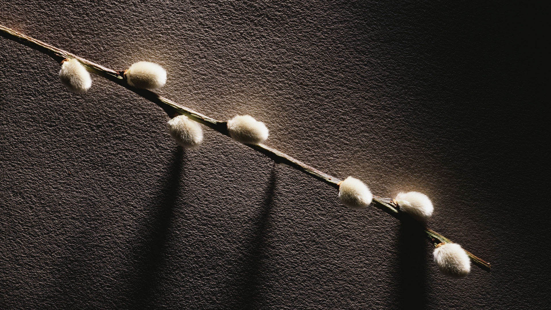 Karanlık bir arka plana karşı söğüt dalı