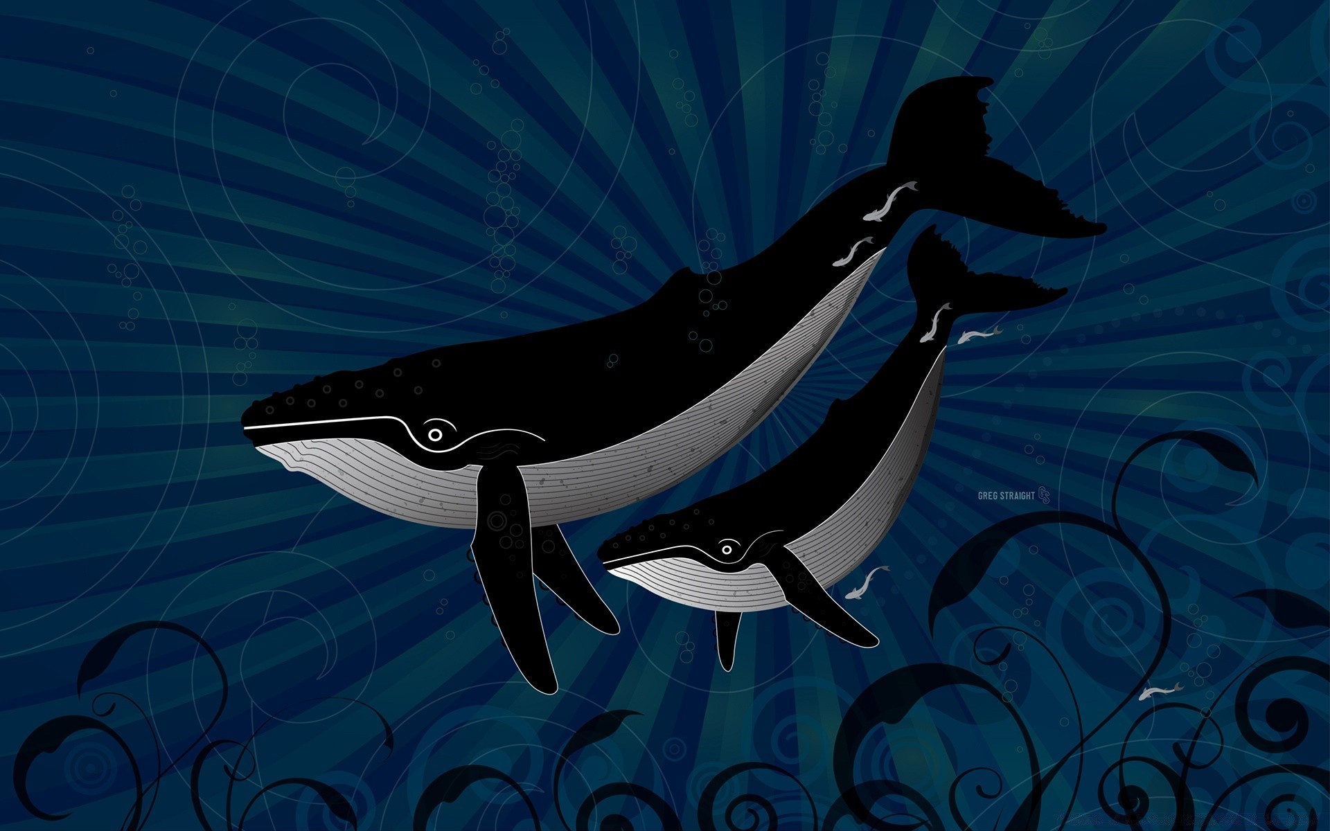 Vektör duvar kağıdında uzaktan su kolonunda bir balina