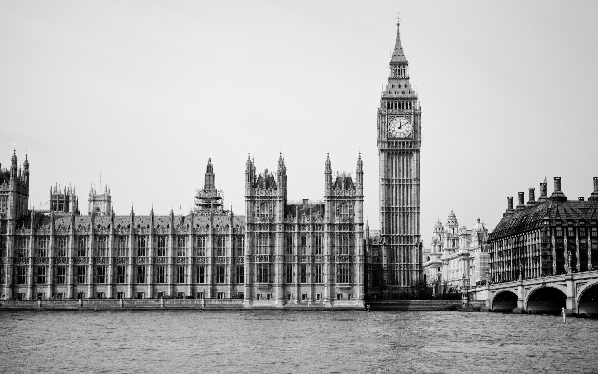 Nehrin karşısındaki köprünün siyah beyaz fotoğrafı