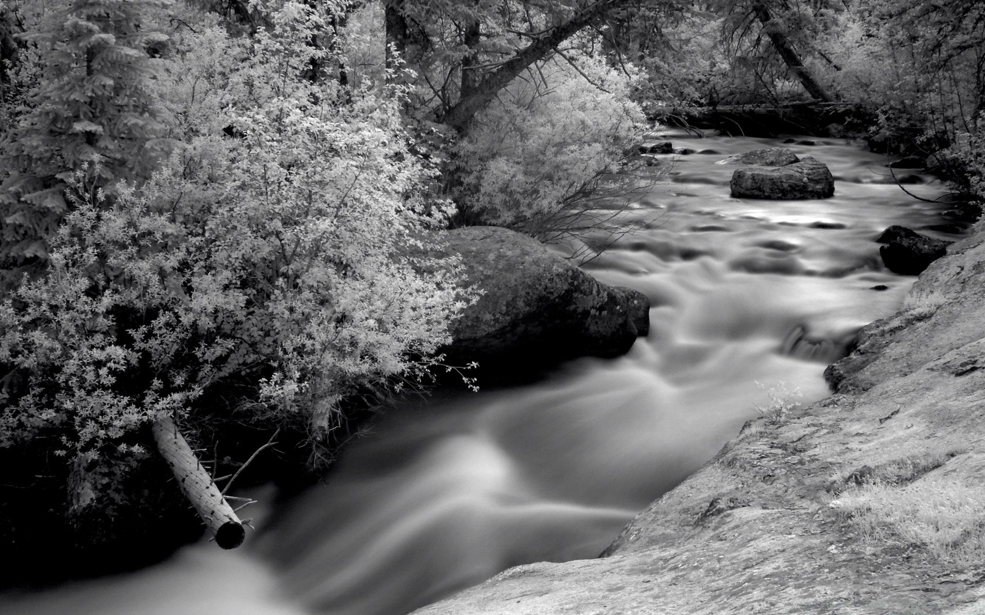 Doğada bisikletin siyah ve beyaz fotoğrafı