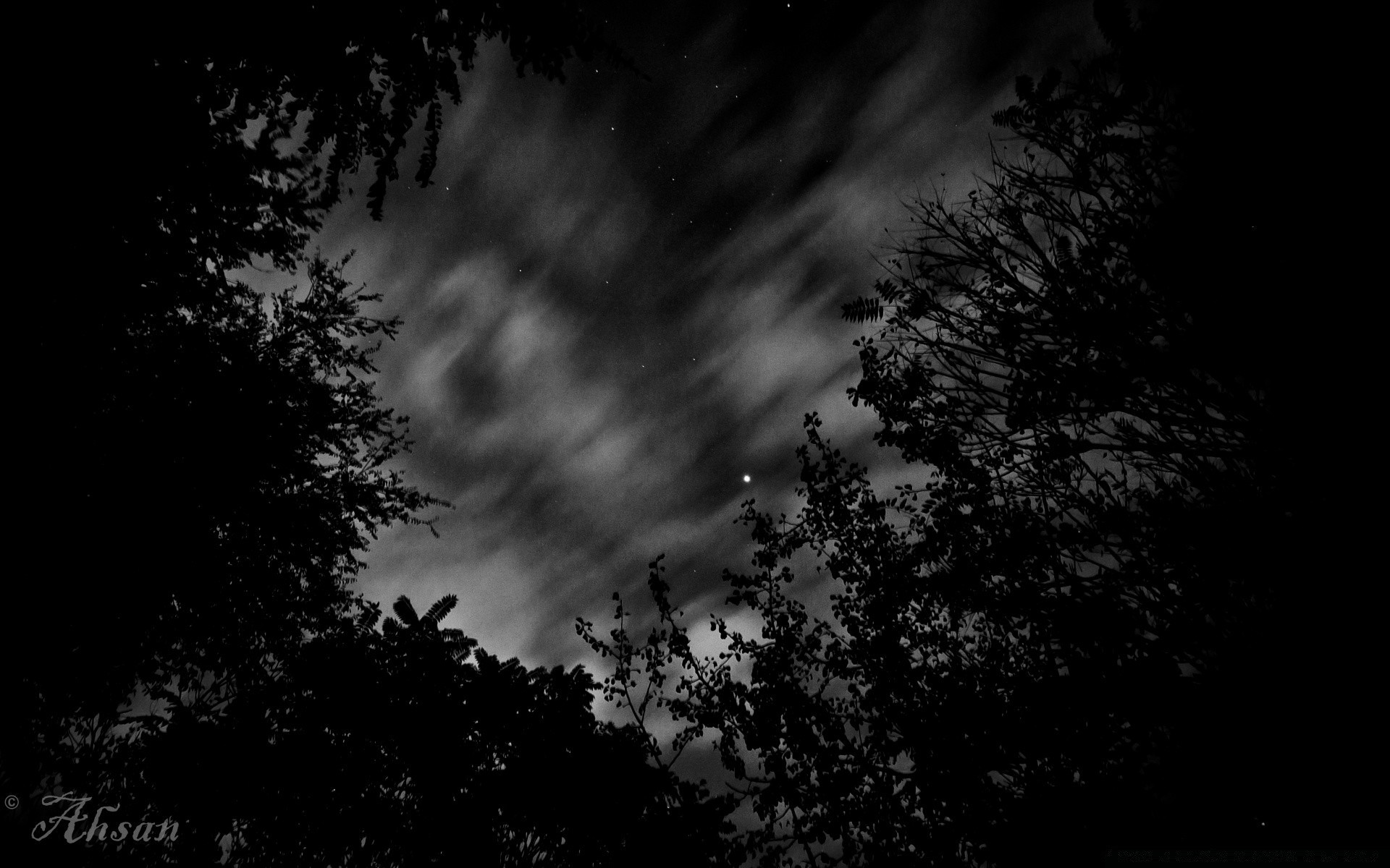 Karanlık orman manzara geceleri siyah ve beyaz fotoğraf