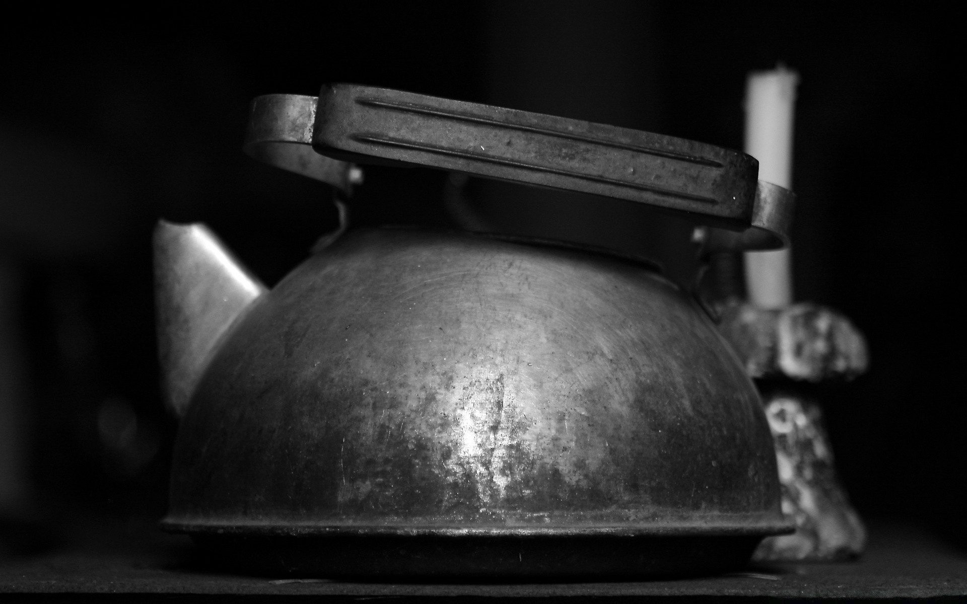Sokaktan evin duvarının siyah-beyaz görüntüsü
