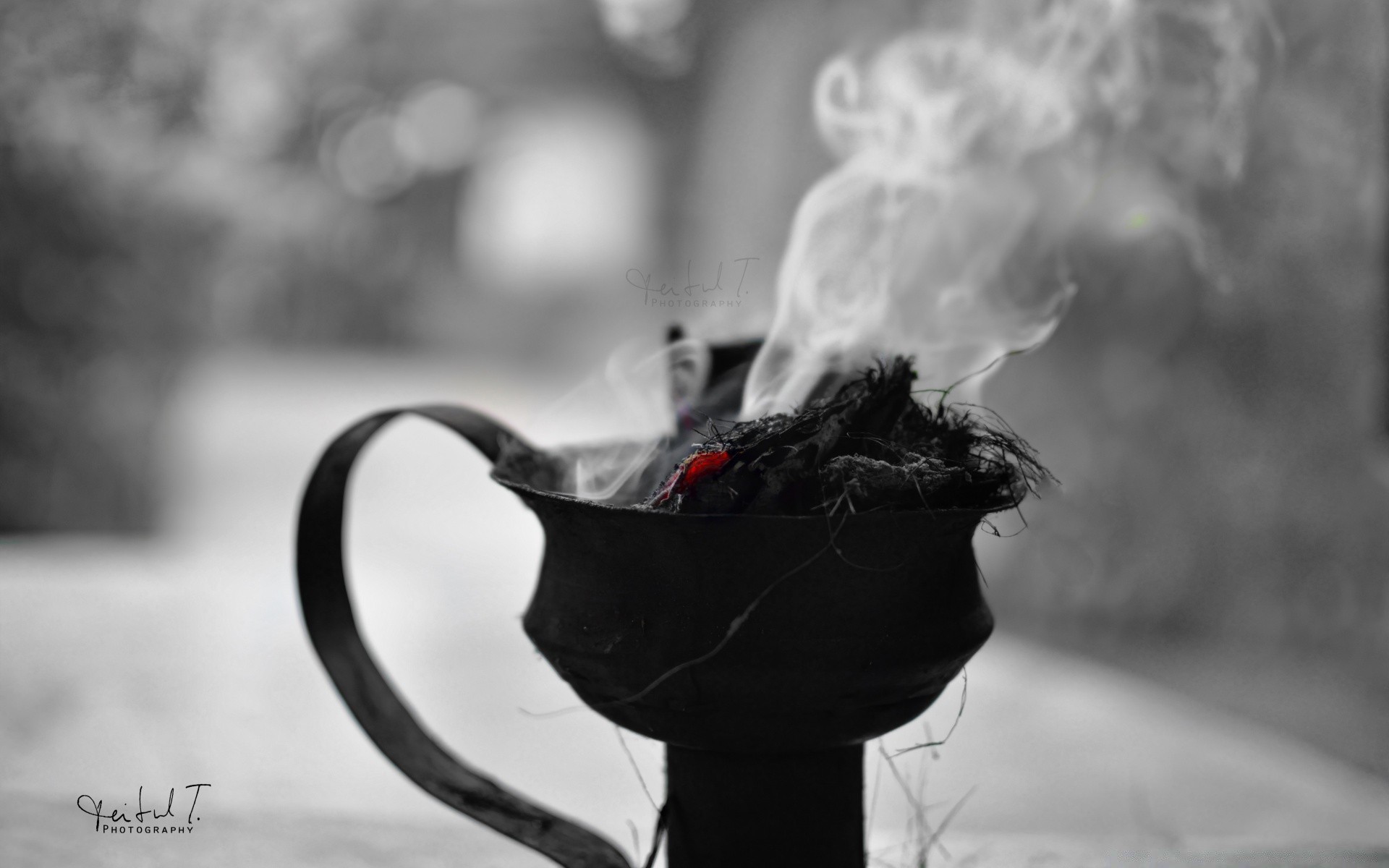 Siyah beyaz, buharlı otlu bir sürahinin fotoğrafı