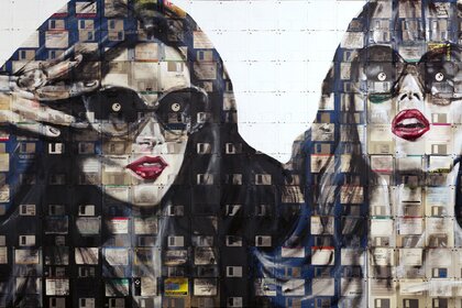 Beyaz duvardaki çok renkli çiçeklerin görüntüleri