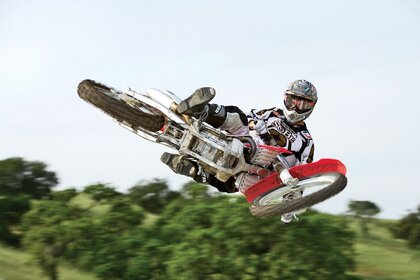 Siyah zemin üzerine kırmızı yıldızlarla motosiklet