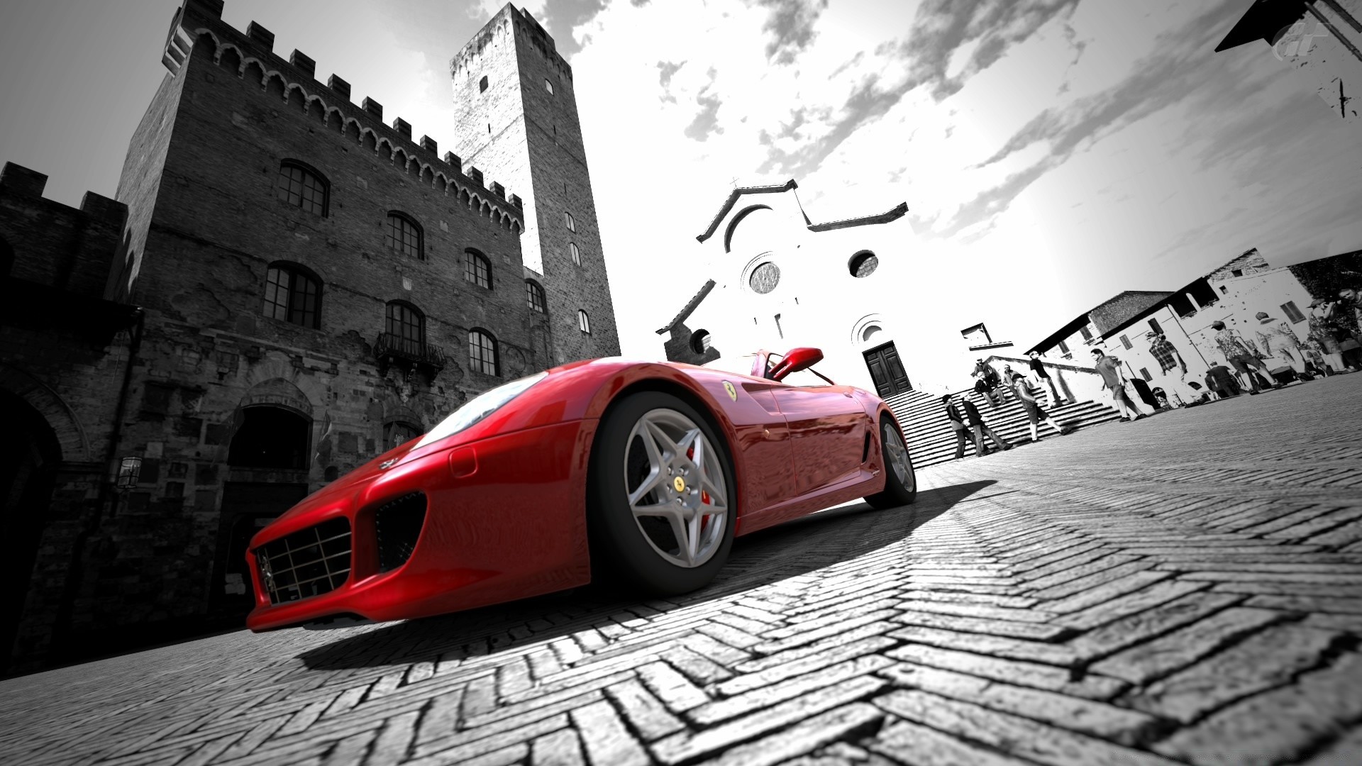 Siyah beyaz zemin üzerine kırmızı spor araba
