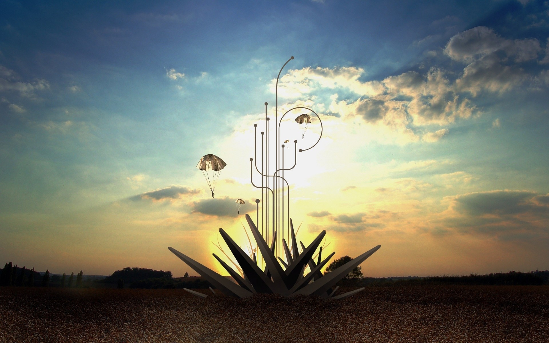 Çayırın üzerindeki gün batımının sıra dışı manzarası