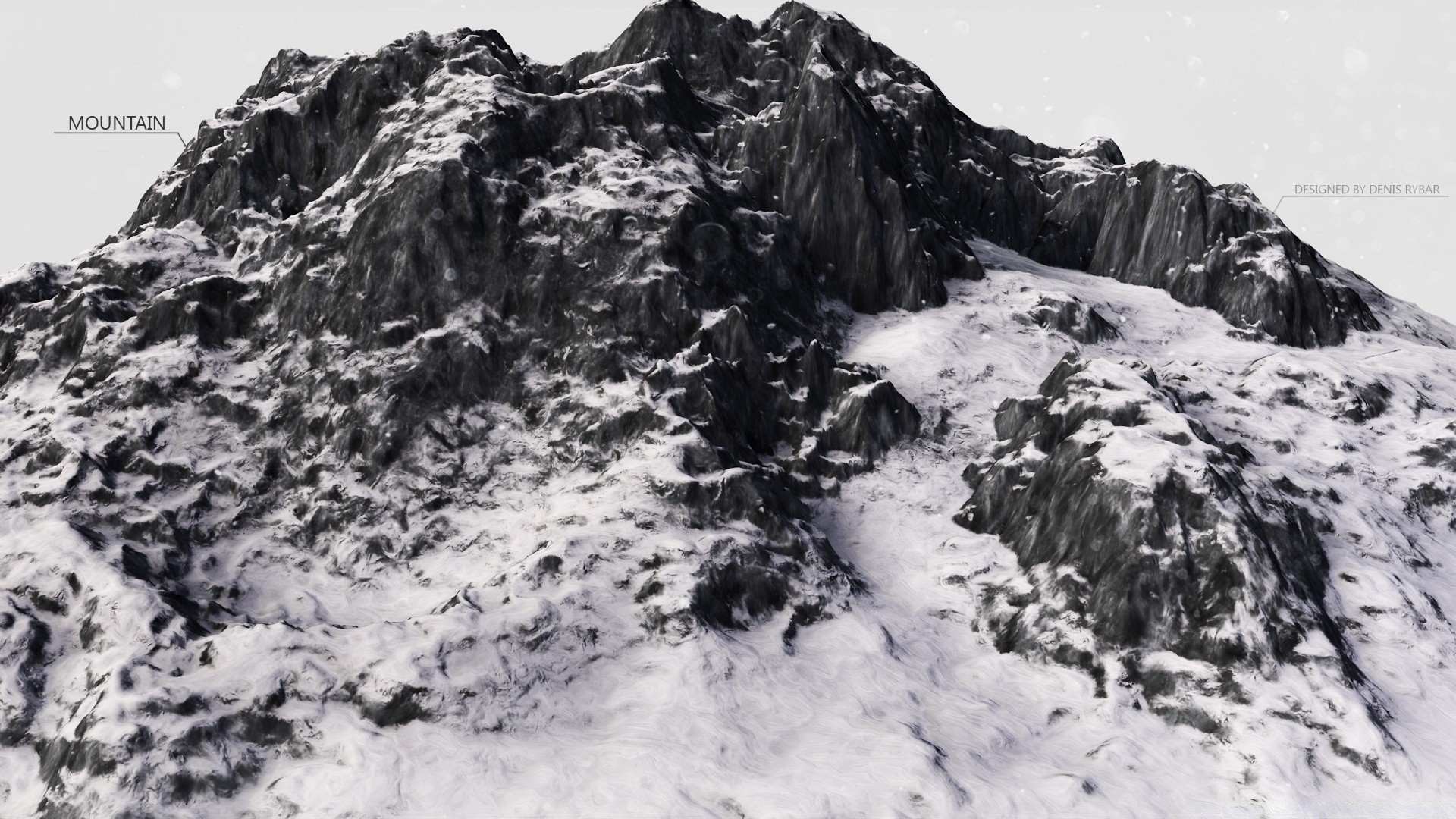 Karda bir dağın siyah beyaz fotoğrafı