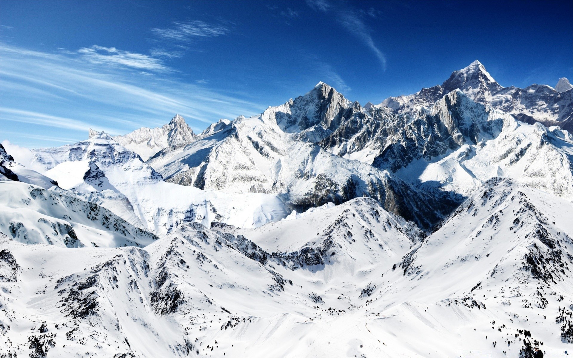 Karla kaplı dağlar ve ormanlarla güzel arka plan