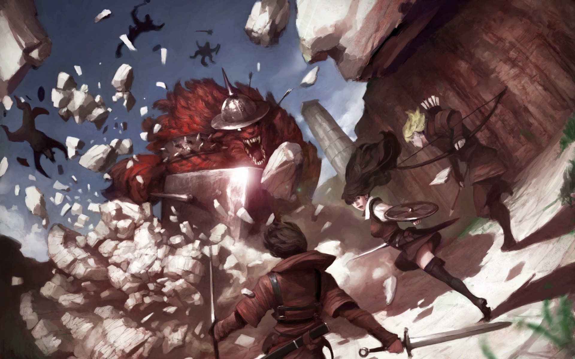 Kılıcı olan bir savaşçı ve bağlı bir canavar