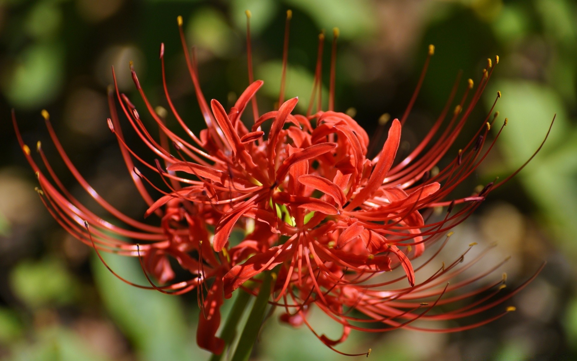 Uzun bir sap üzerinde olağandışı pembe çiçekler
