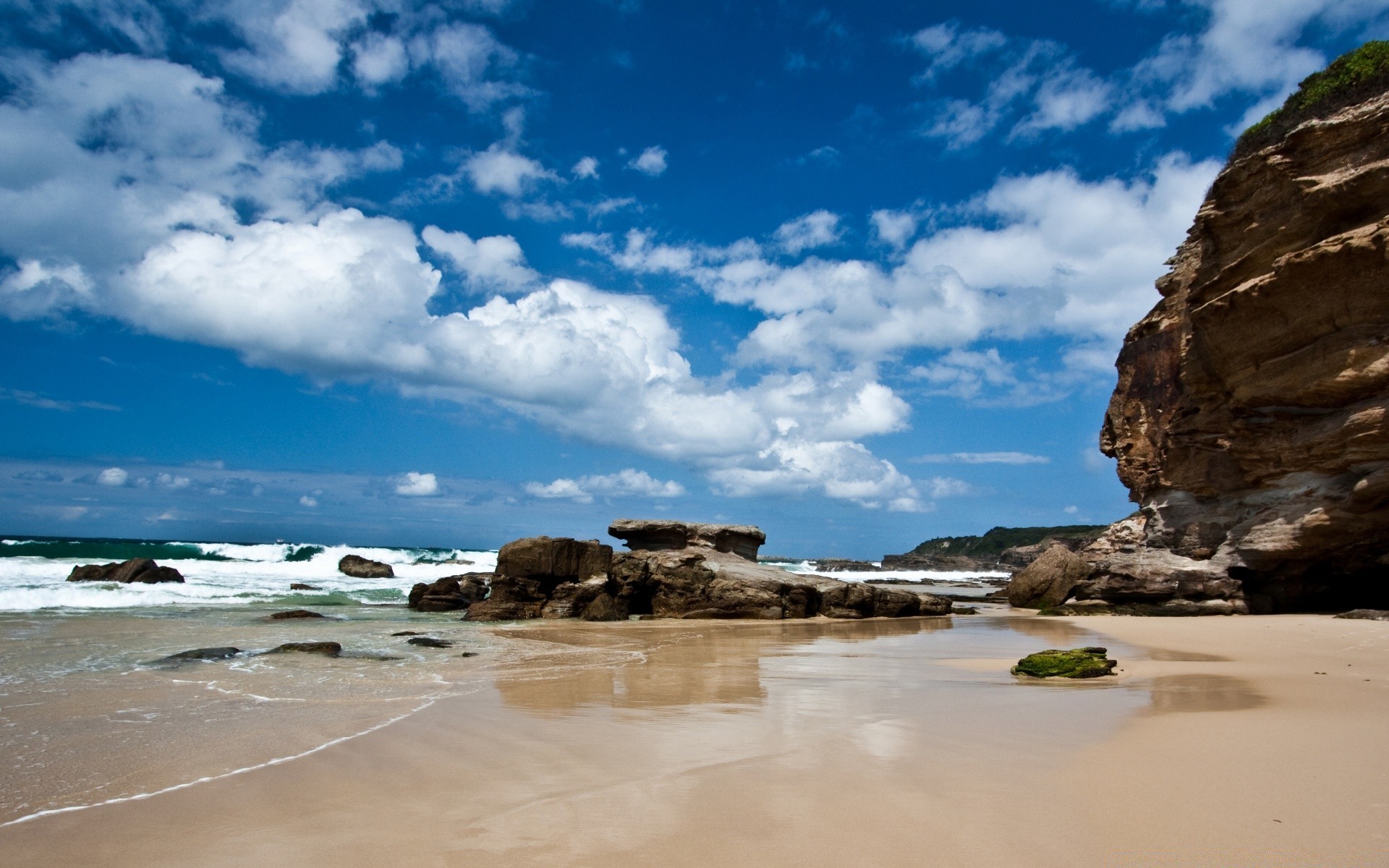Kayalık kıyıların arasında kayalık bir deniz plajı