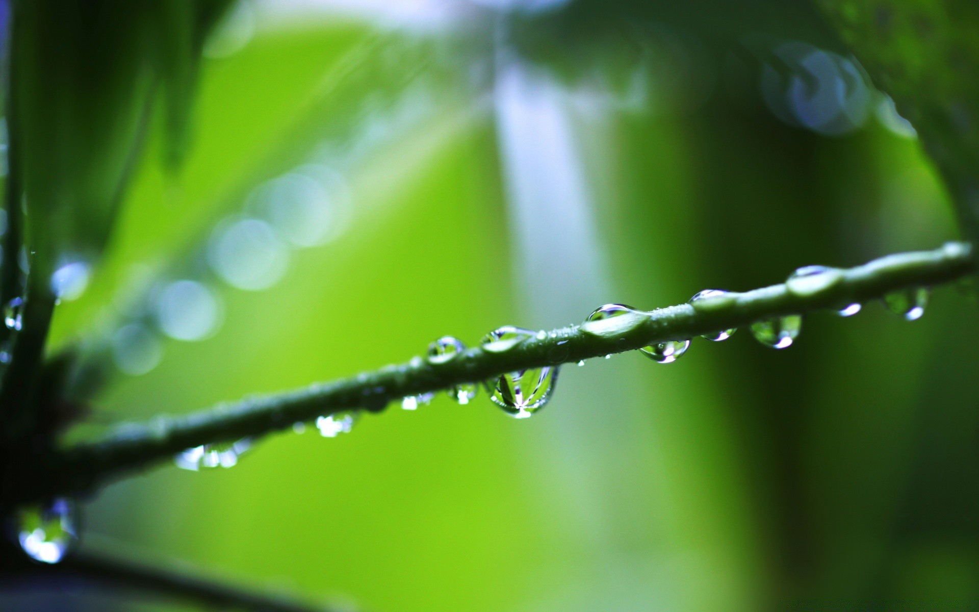 Yeşil yaprak üzerinde çiğ damlacıkları