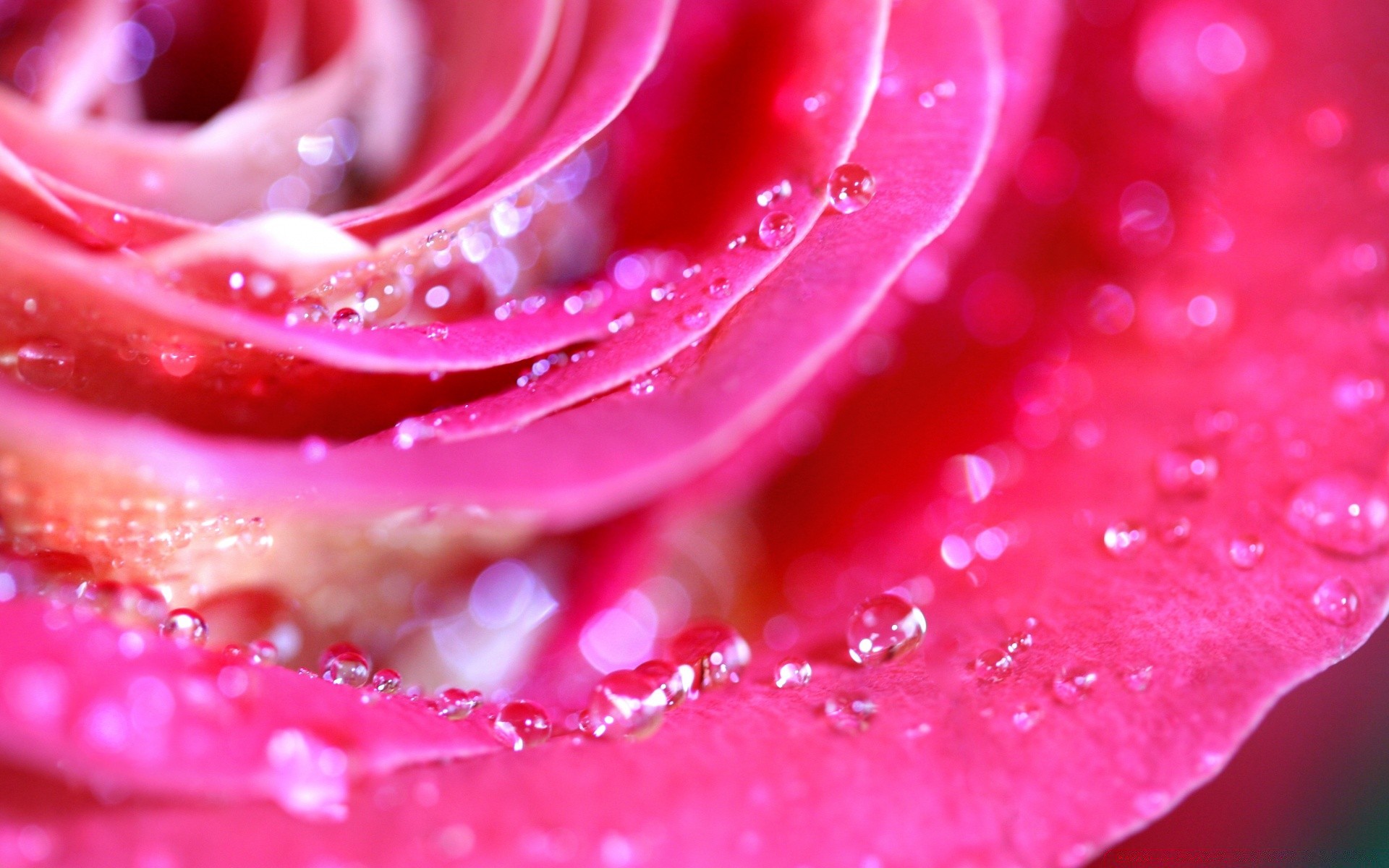 Güneş ışınları ile yeşil bir arka plan üzerinde su damlacıkları