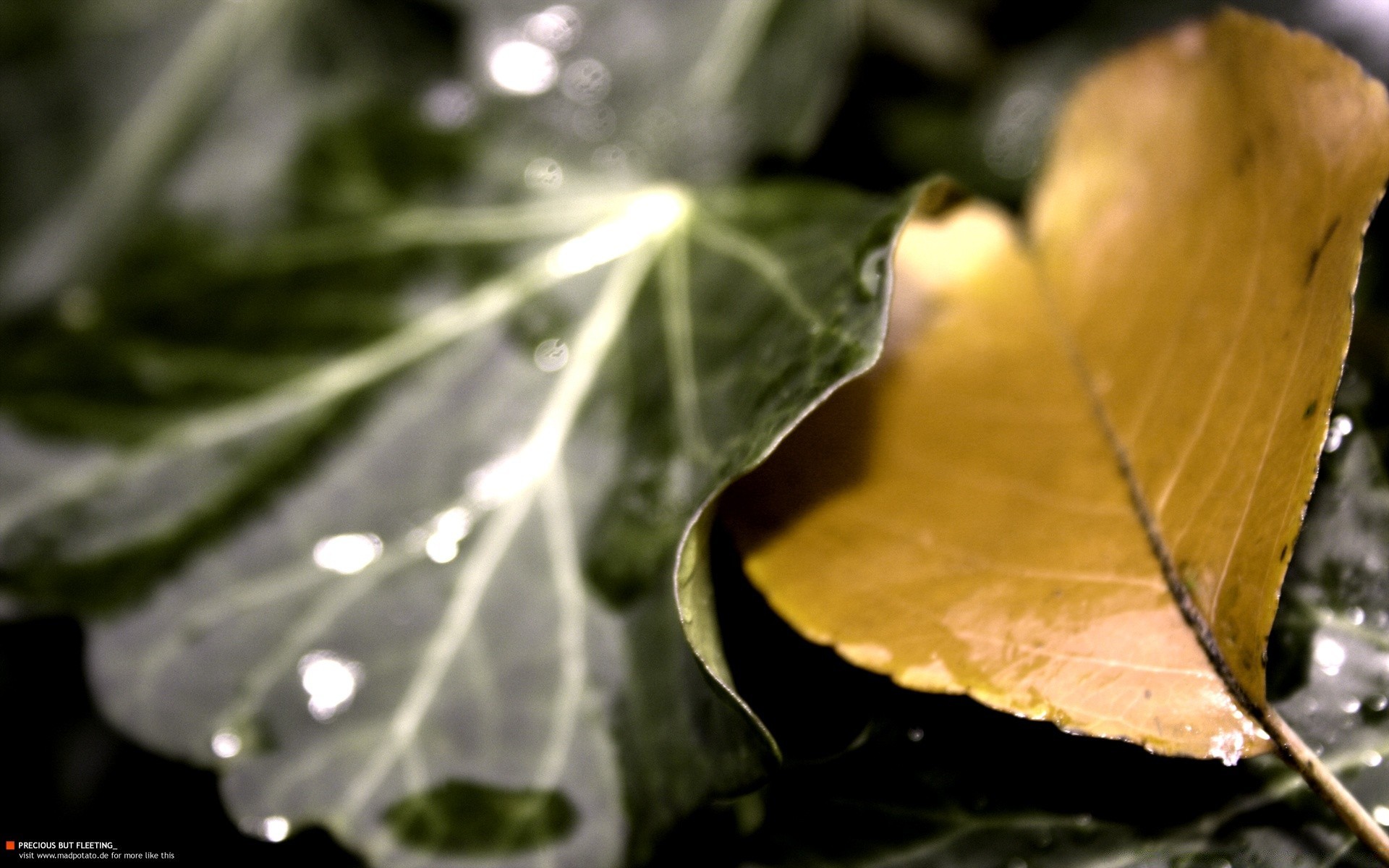 Uğur böceği çiğ damlaları olan bir yaprağa oturur
