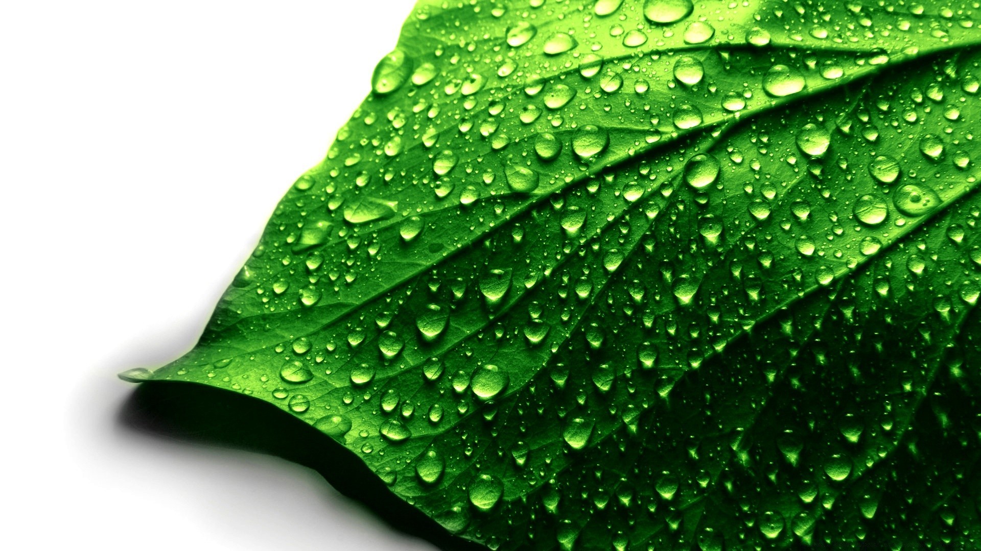 Yeşil yaprak üzerindeki su damlaları