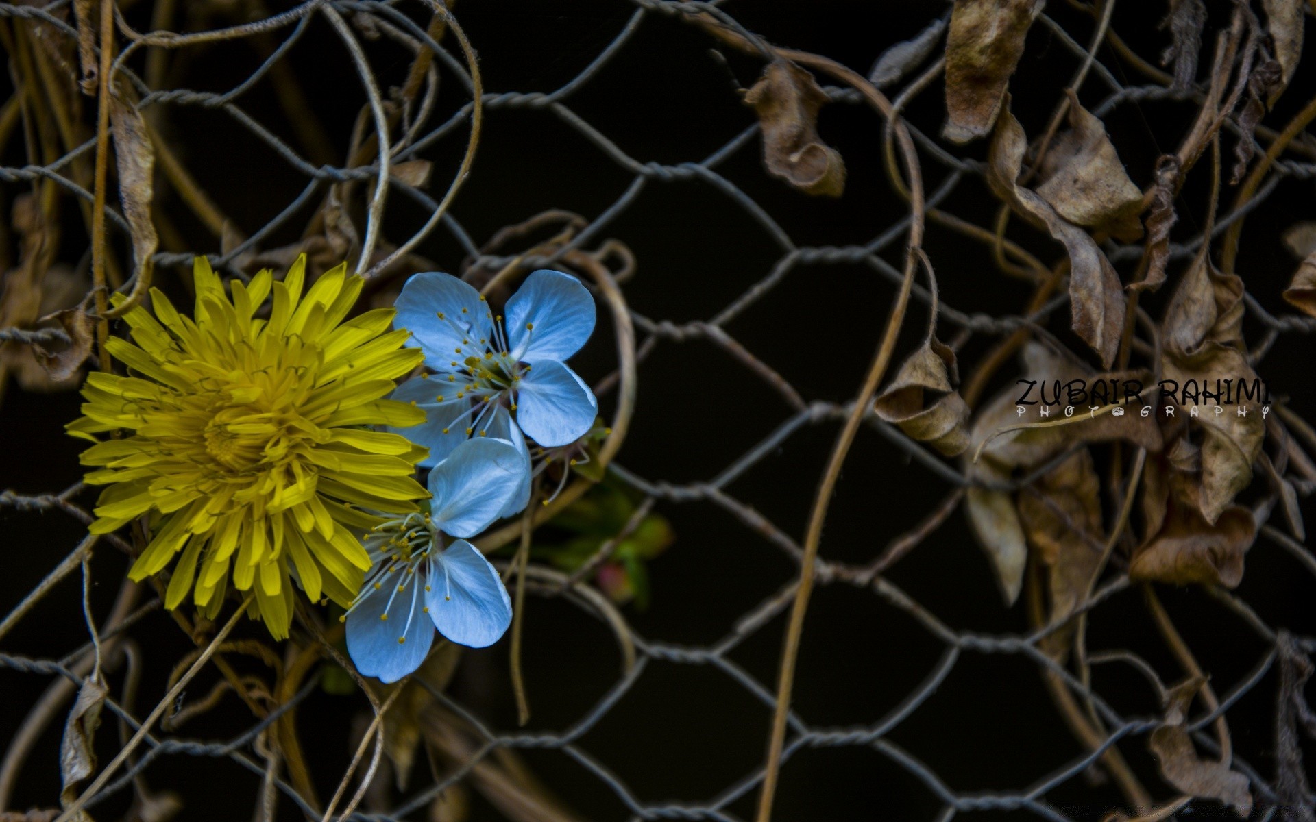 Demir çit ağındaki çiçekler