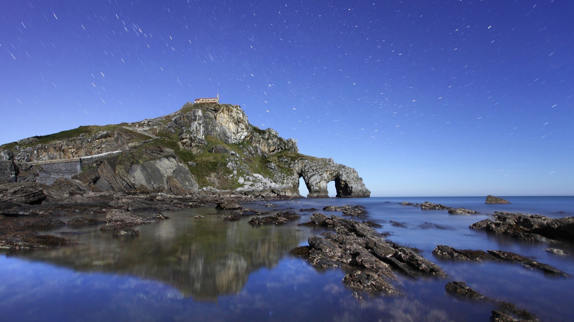 Deniz ve okyanus. Kayadaki ev