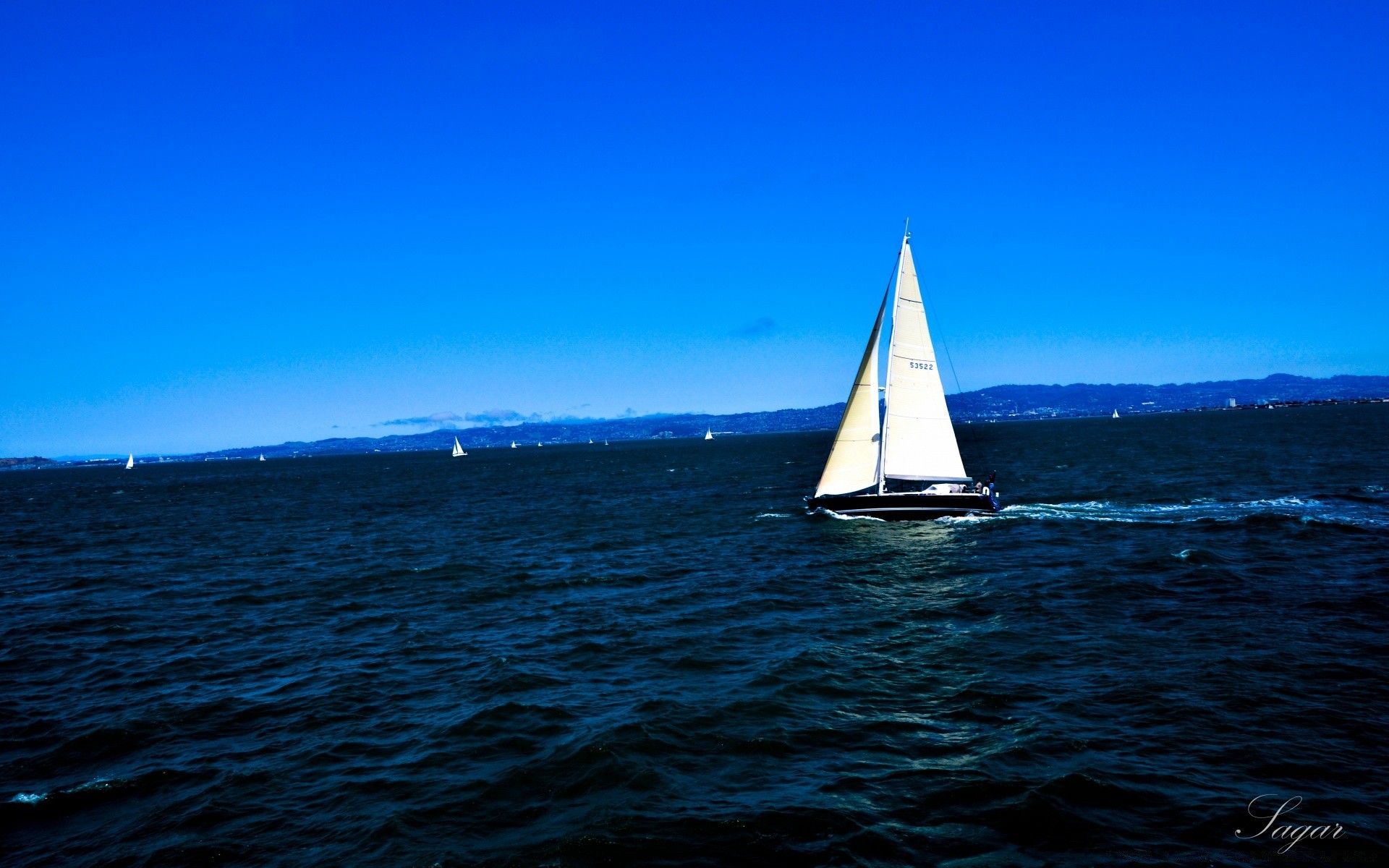 Okyanusun ve yelkenlilerin şeffaf yüzeyi