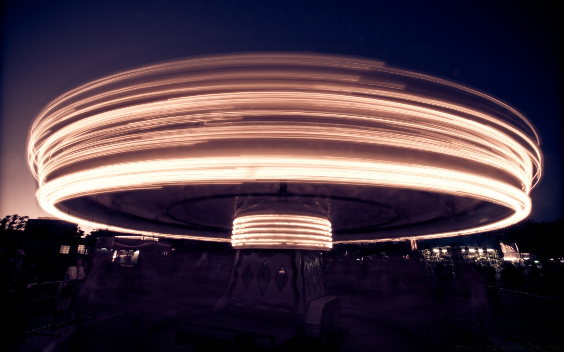 Gece kentinin zeminine karşı bir destek üzerinde yuvarlak büyük bir bina
