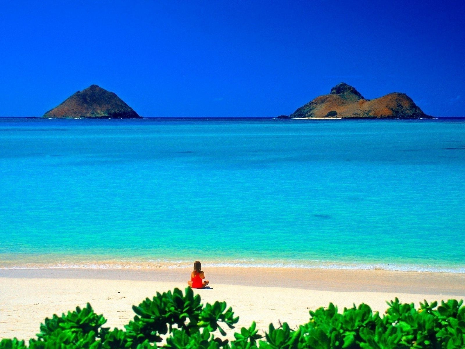 Palmiye ağaçlarıyla birlikte lagünün tropikal manzarası