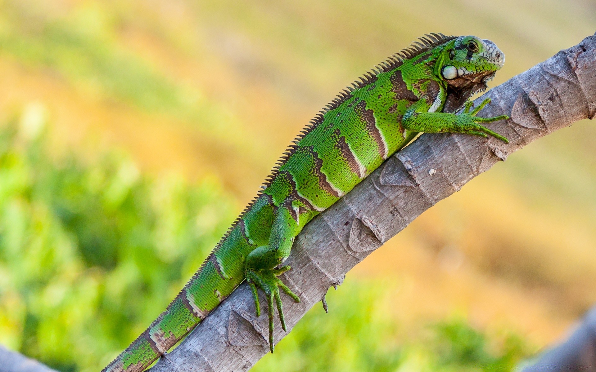 Vahşi doğanın arka planına karşı yeşil hamilion
