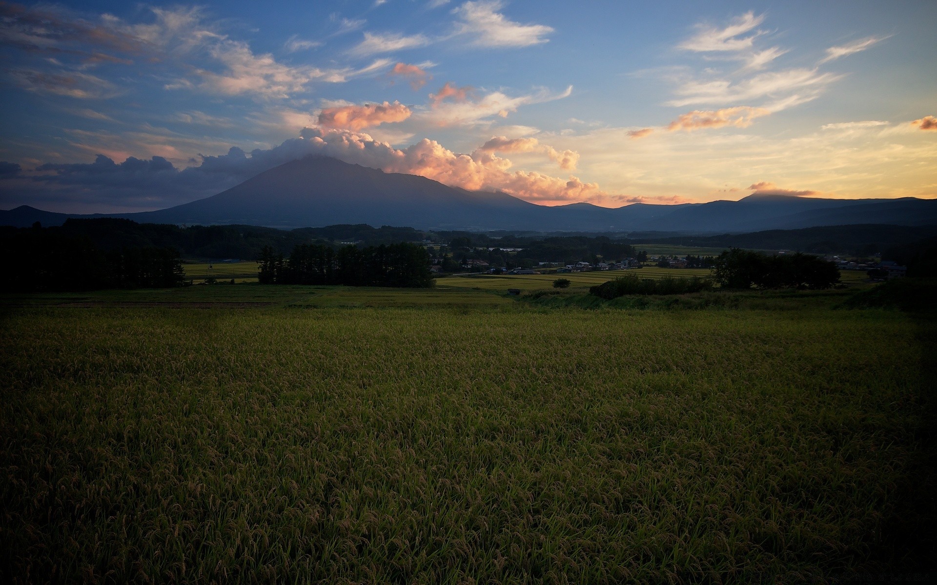 Alanın üstündeki gökyüzünde tüylü bulutlar