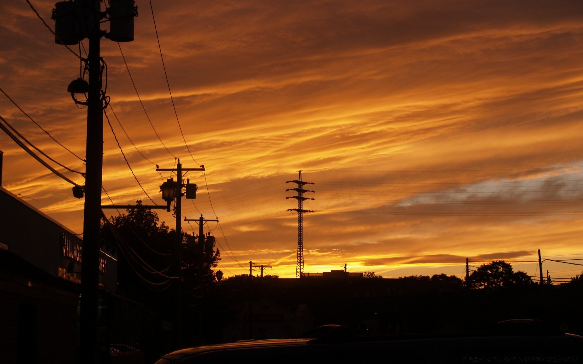 Gün batımı gökyüzünün arka planına karşı enerji santralleri