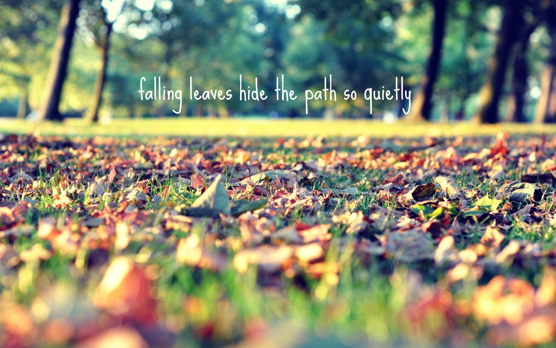 Yeşil çimenlerin üzerinde düşen sonbahar yaprakları