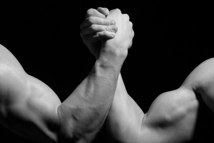 Gri bir arka plana karşı sahilde bir erkek ve bir kadın