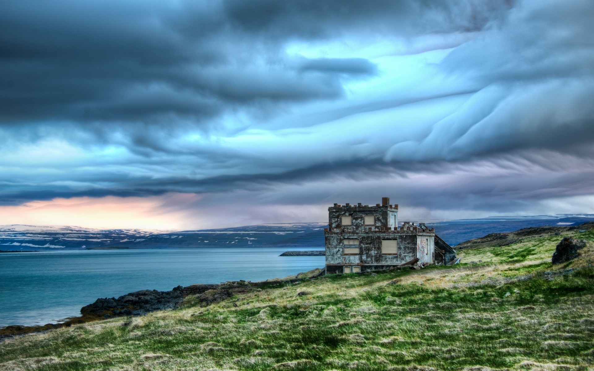 Güzel eski Avrupa evlerinin gece göletindeki yansıma