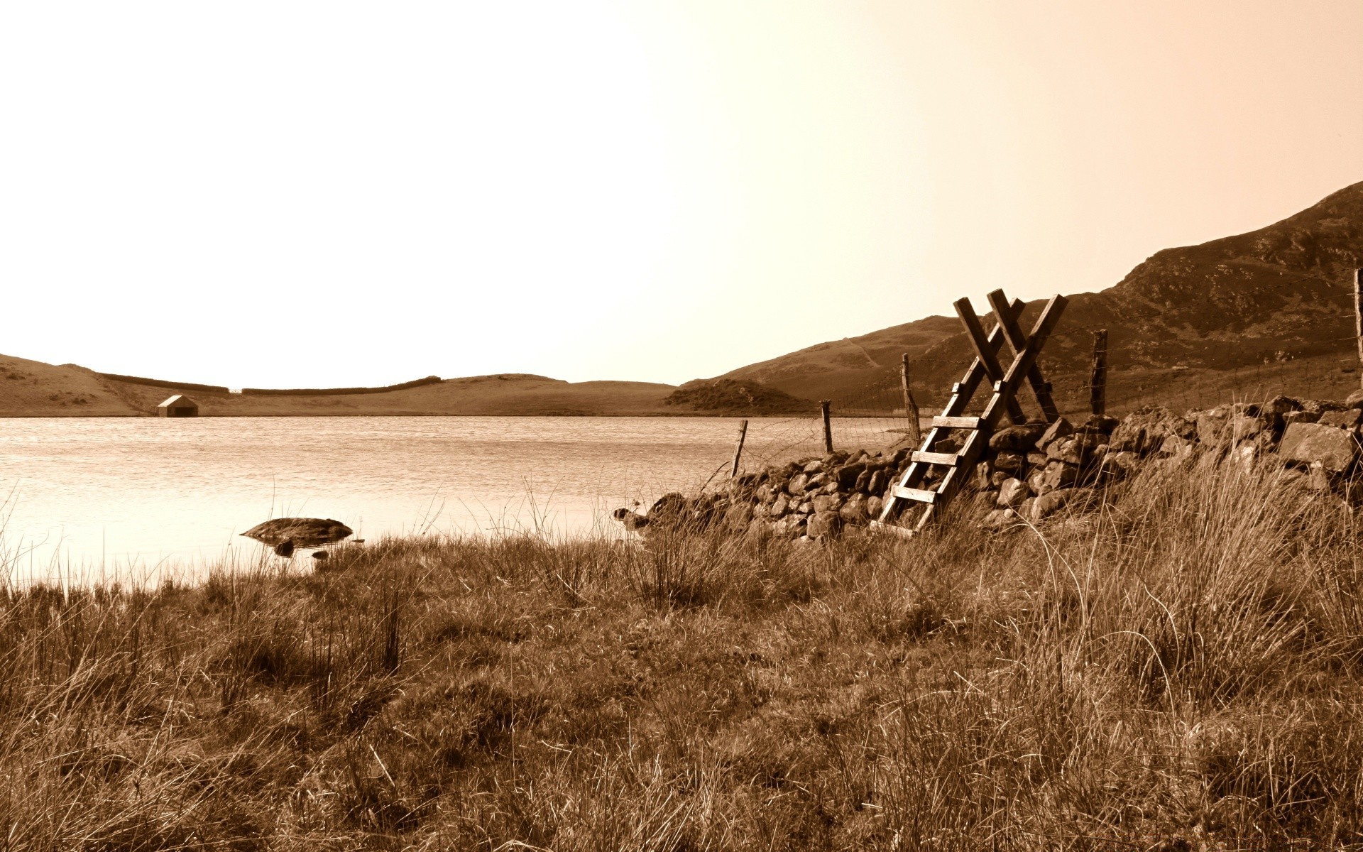 Sakin gölün eski fotoğrafı