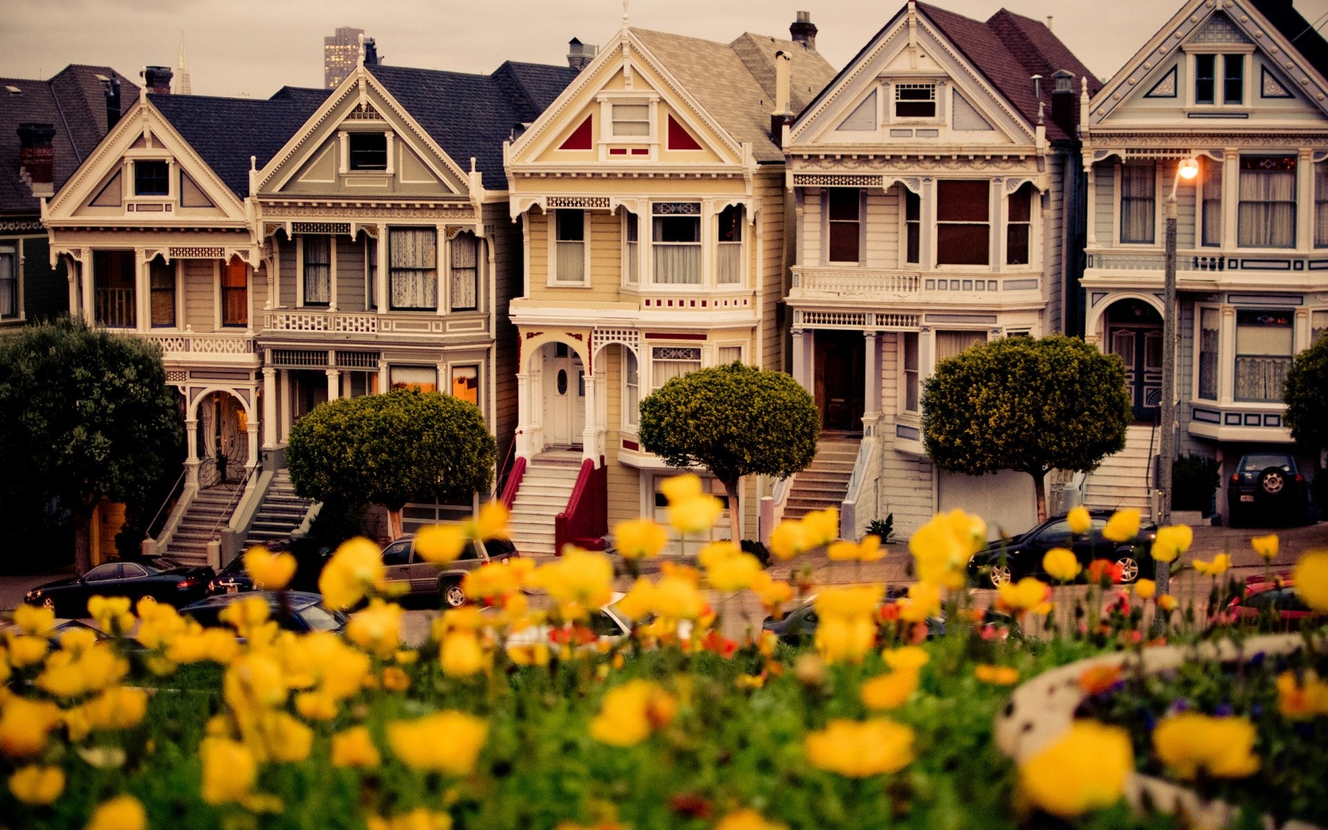 Aynı tür evlerin sevimli Amerikan mimarisi