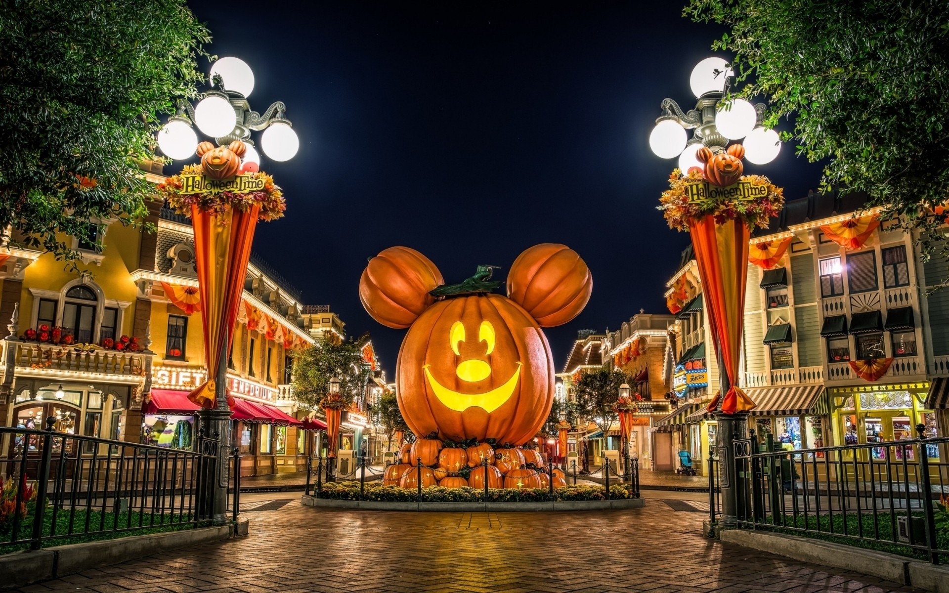 Cadılar Bayramı için şekil Balkabağından Mickey Mouse akşam Sokağı
