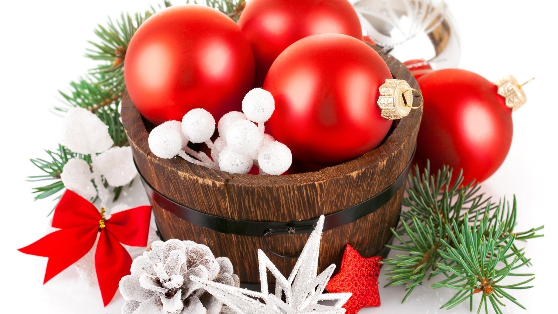 Bir fıçıda yılbaşı süsleri. kış