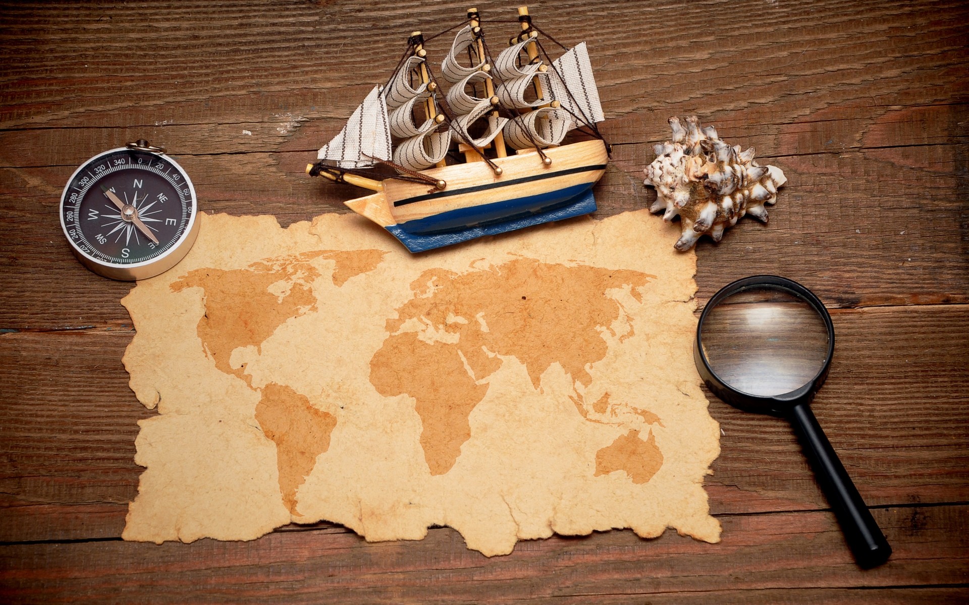 Harita Pusula Deniz Kabuğu Gemi Büyüteç seyahat