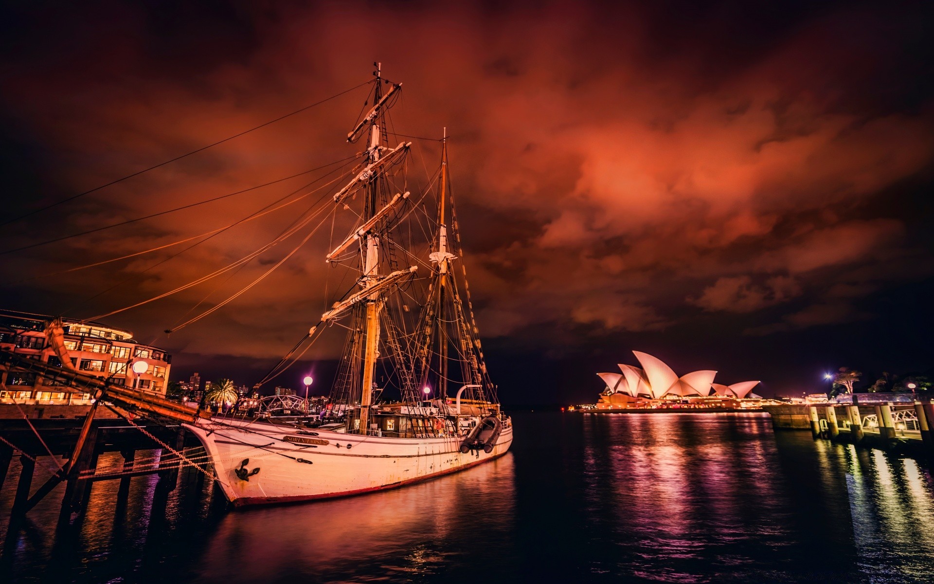 Gece yarısı avustralya'daki rıhtımdaki gemiler
