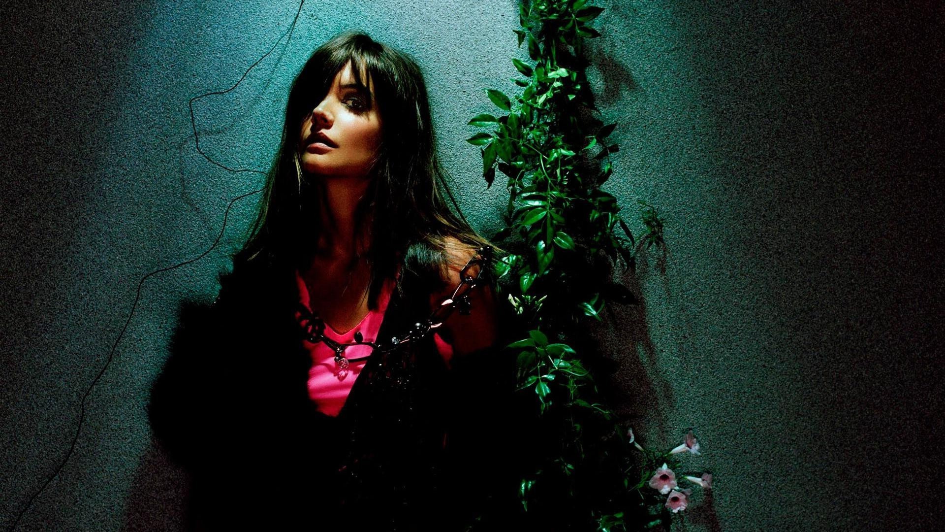 Duvarın arka planında güzel kız