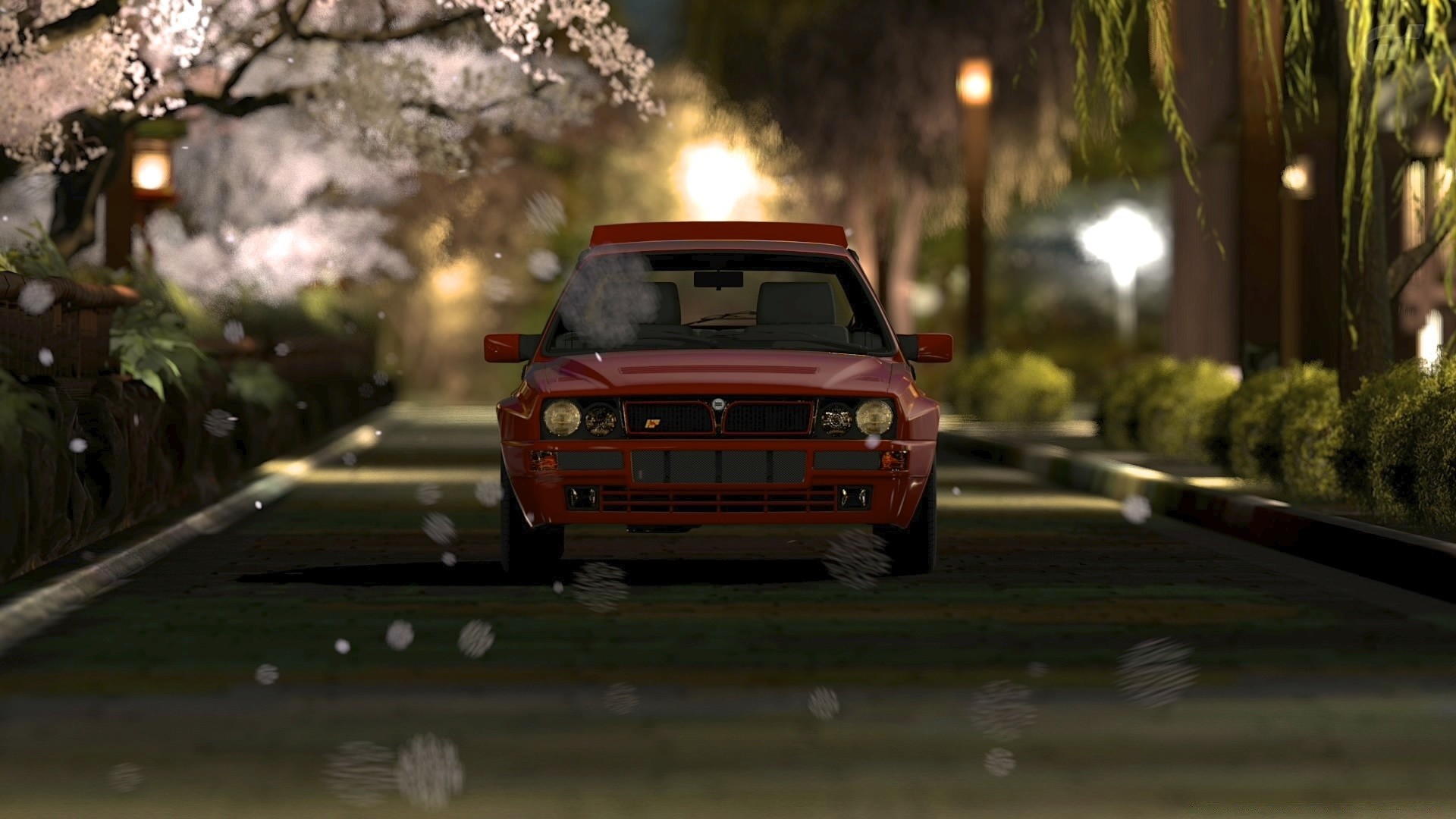 Tuğla binanın yanında renkli camlara sahip parlak sarı bir araba