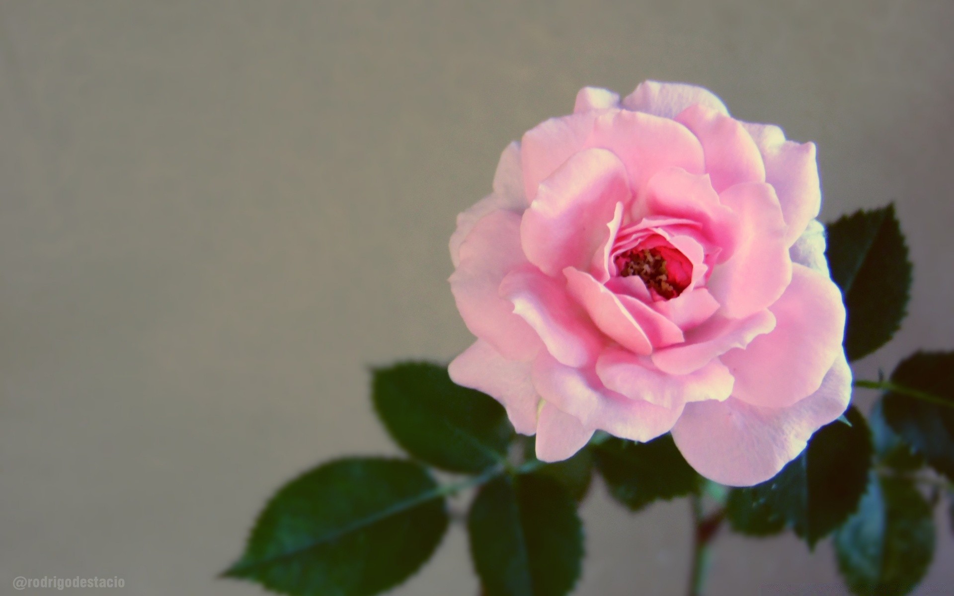 Gri bir arka plan üzerinde pembe gül