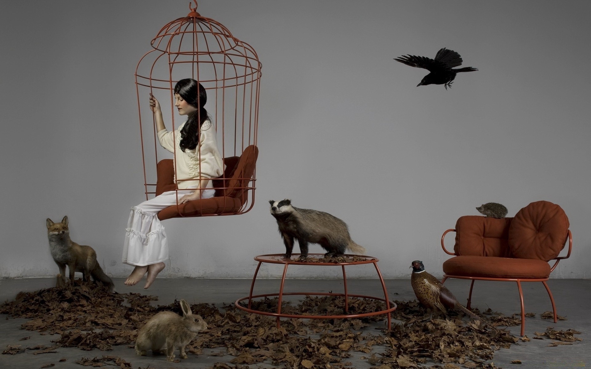 Kız salıncakta olduğu gibi kafeste oturuyor