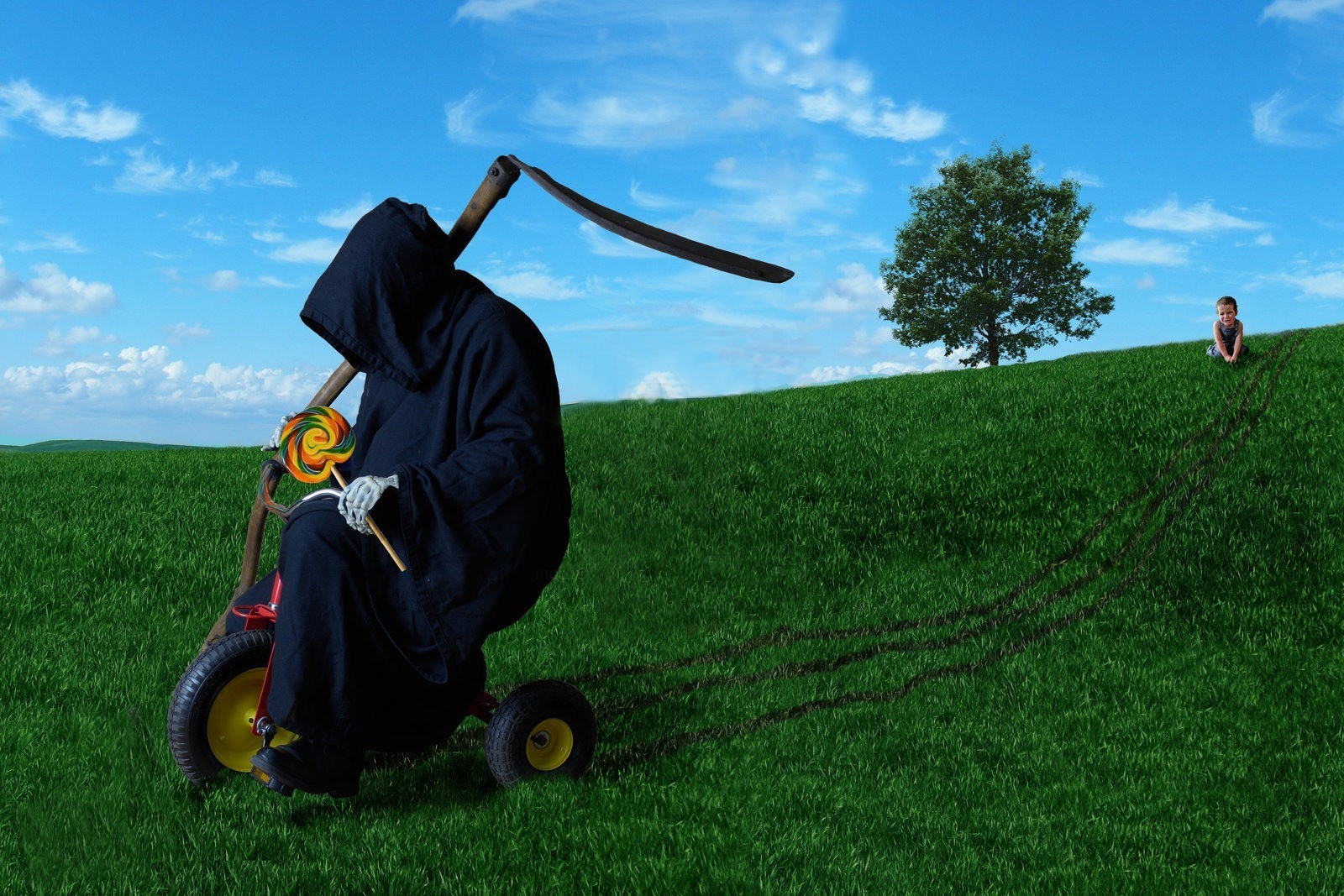Çimlerde ve açık havada kara mizahın manzarası