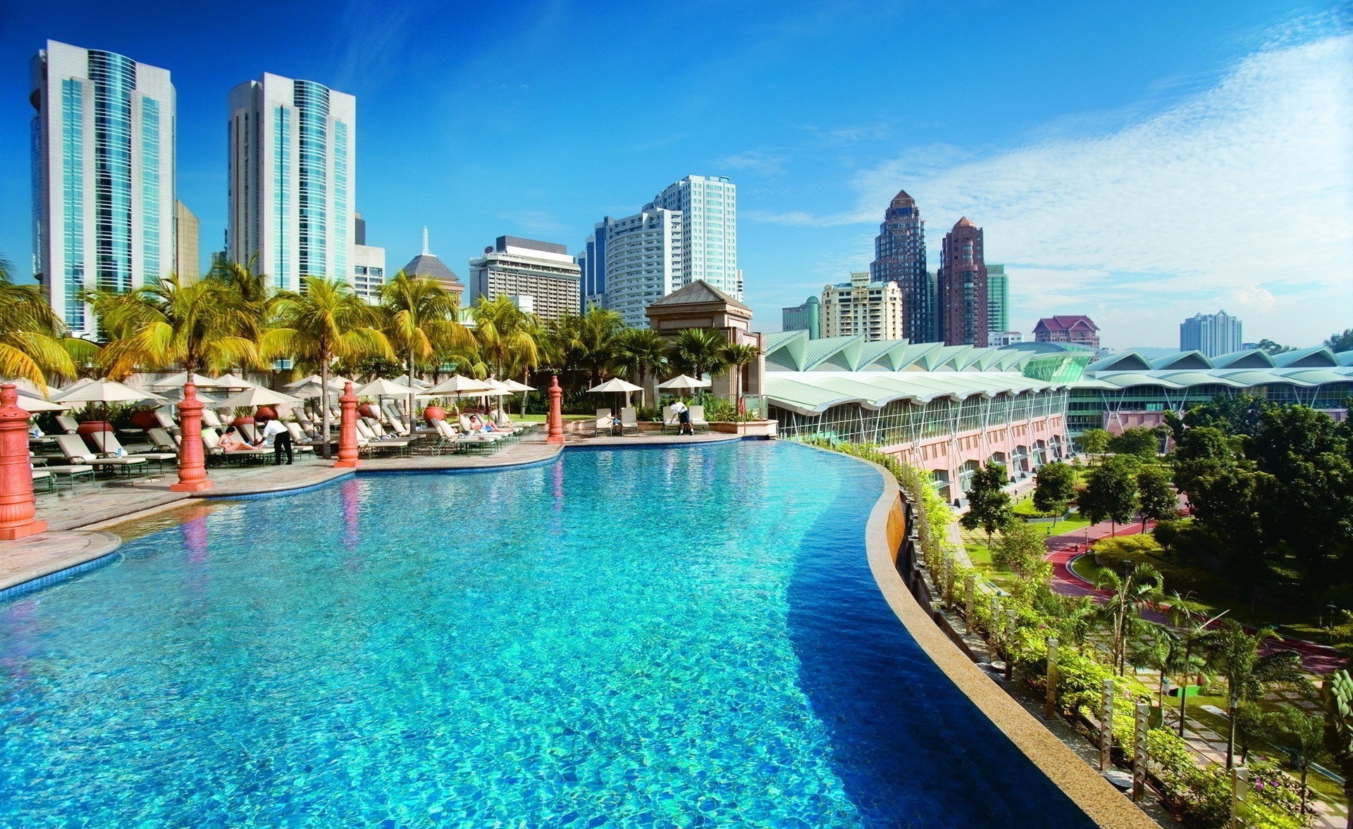 Otelin yüksekliğindeki güzel yüzme havuzu