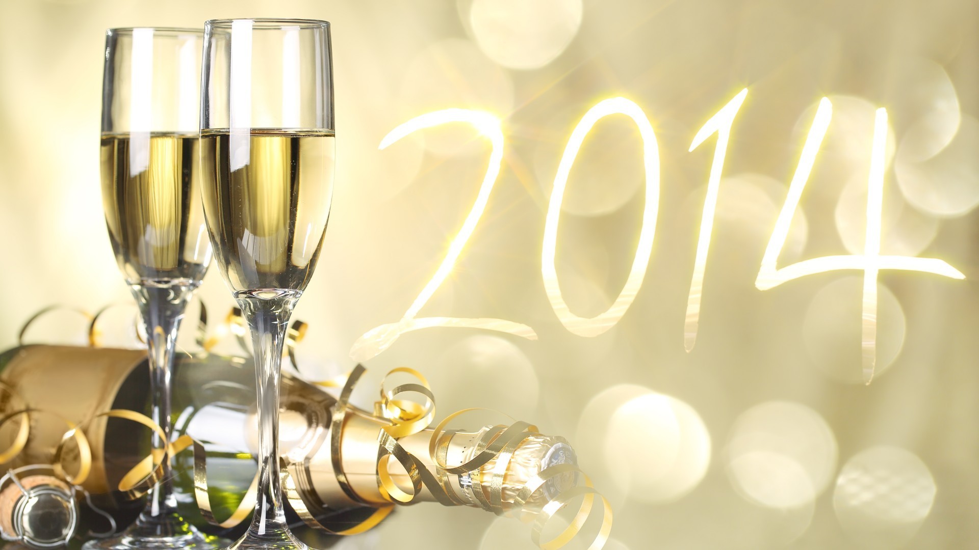 Bokeh zemininde Yılbaşı bardakları ve şampanyalar
