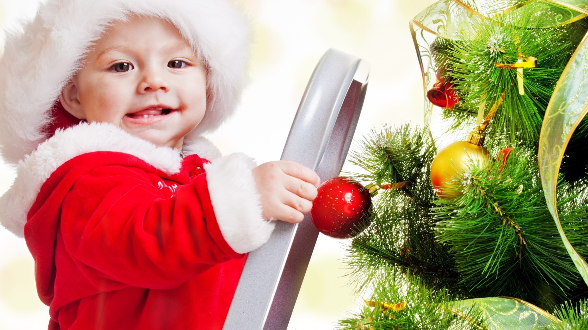 Yılbaşı şapkalı, tüylü ve Yılbaşı topuyla çocuk