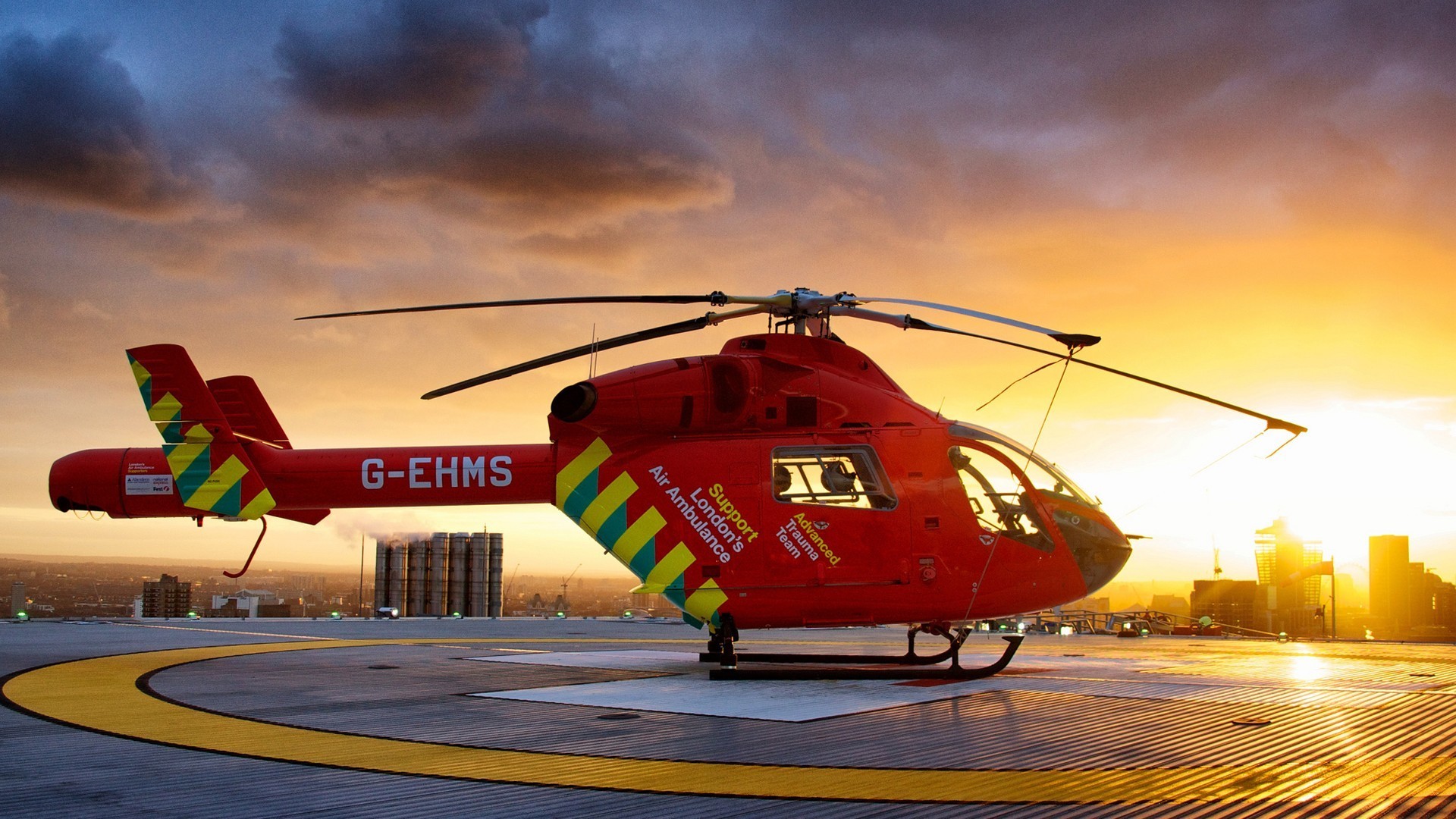 Uyuyan helikopter, yerdeki araba, gece manzarası