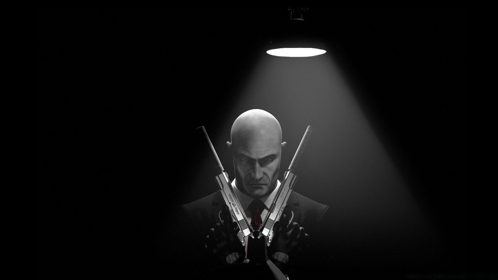 Karanlık bir zemine karşı tabancaları olan havalı bir adam